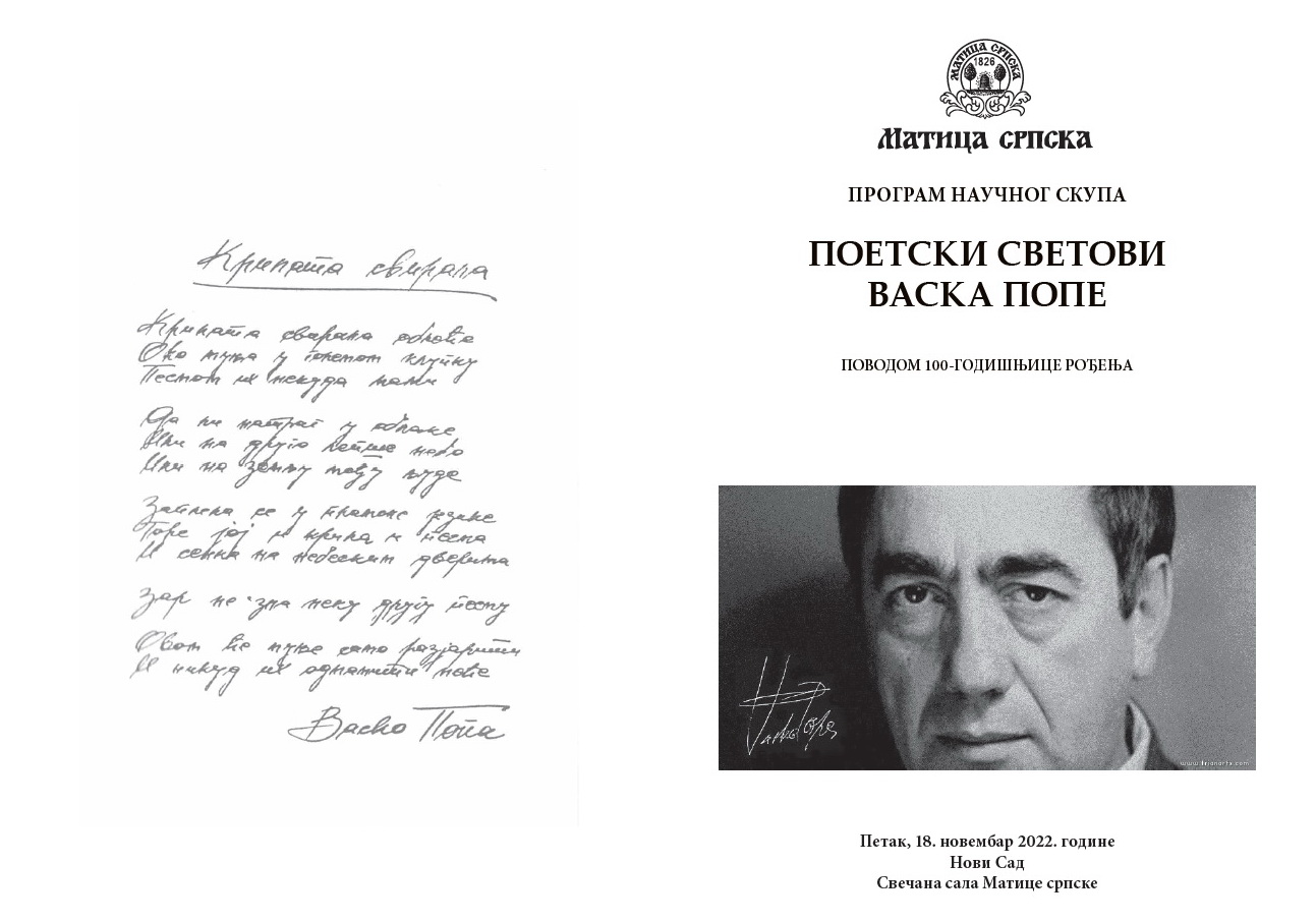Naučni skup će početi od 10 časova, a na otvaranju će pozdravne reči govoriti ministarka kulture Maja Gojković, predsednik Pokrajinske vlade Igor Mirović, predsednik Matice srpske Dragan Sranić, dopisni član SANU i potpredsednik Matice srpske Jovan Delić, kao i akademik Matija Bećković.